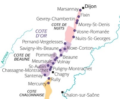 Pravijo, da najboljši modri pinot prihaja ravno od tod, hkrati pa Burgundci pravijo, da pri njih ne bi uspevala nobena druga vrsta grozdja, saj je pokrajina precej severno in ima relativno hladno in mokro podnebje. Glavno mesto pokrajine je mesto Dijon, ki je nekako na pol poti iz severnega Pariza do južnega Lyona. Iz Pariza je najbolje priti s hitrim TGV vlakom (uro in pol vožnje), iz Slovenije pa z letalom iz Benetk neposredno v Lyon in nato naprej z avtom dve uri do Dijona. Avto pride še kako prav pri raziskovanju vinskih kleti in drugih ogleda vrednih stvari v Burgundiji.